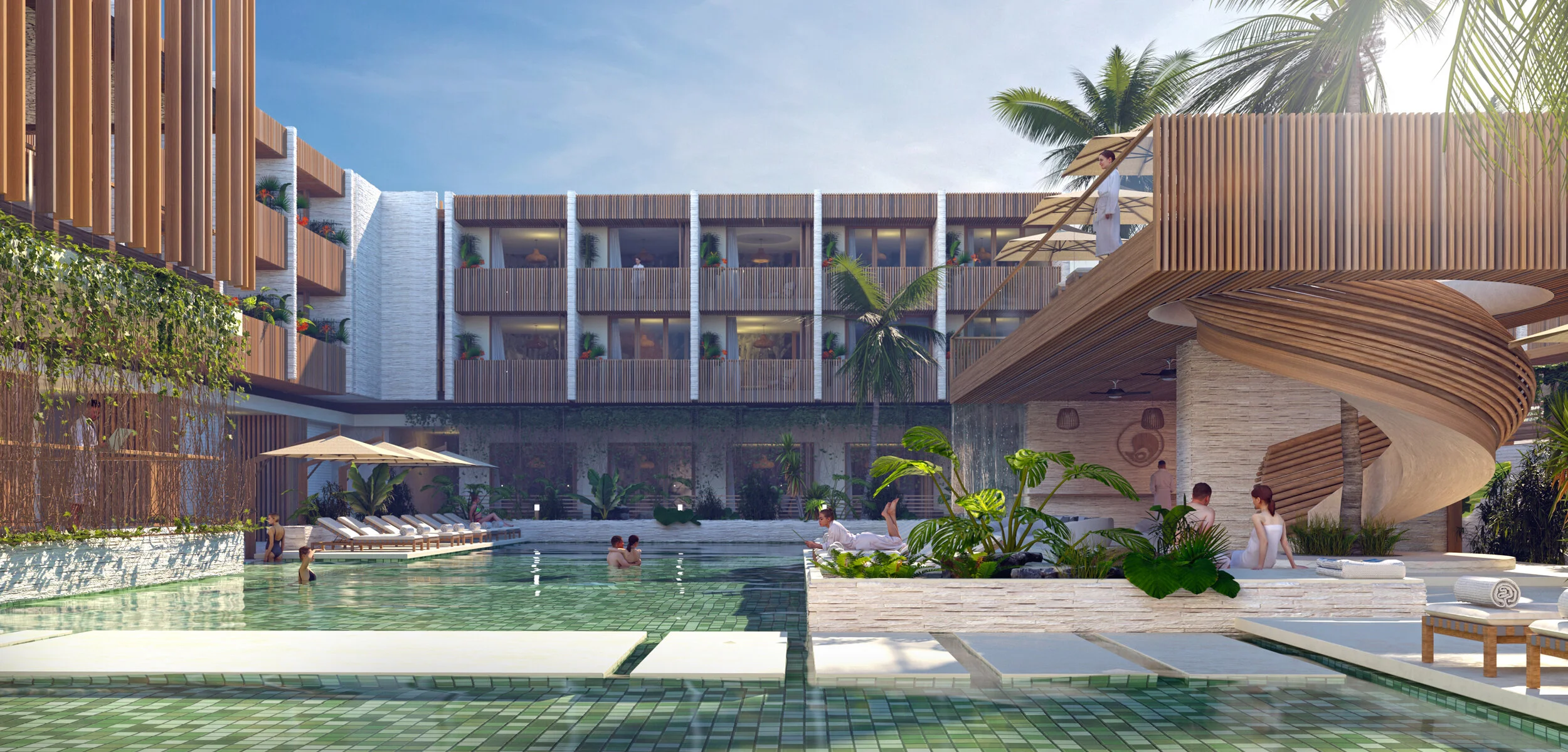 The Point resort project is the expansion and upgrading of an existing hotel in Kuta. The design is characterized by its tropical modern style, emphasizing natural materials with simple forms. Solar shading and overhangs help with passive cooling whilst the use of planting and greenery bring a feeling of tranquility into the scheme. The hotel is a mix of room sizes and private pool villas, all centered around the courtyard pool area.